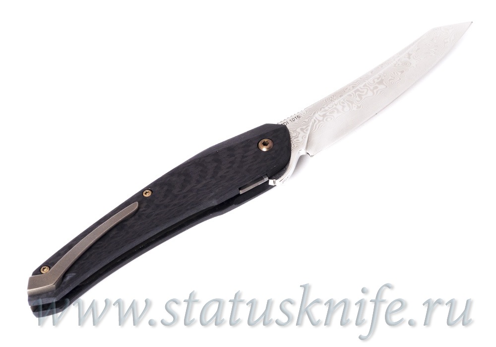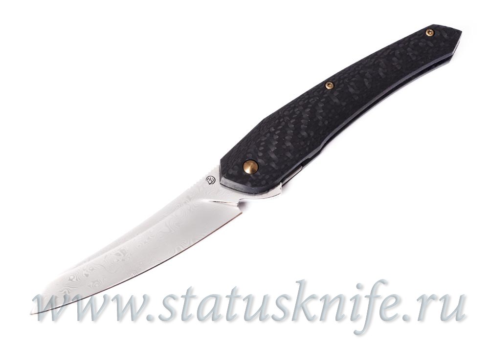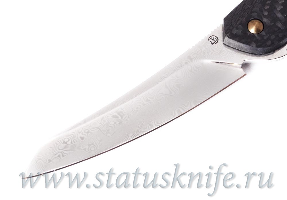 Нож "Кобра" мастерской Чебуркова, клинок из дамаска, подшипник в осевом узле, рукоять карбон.