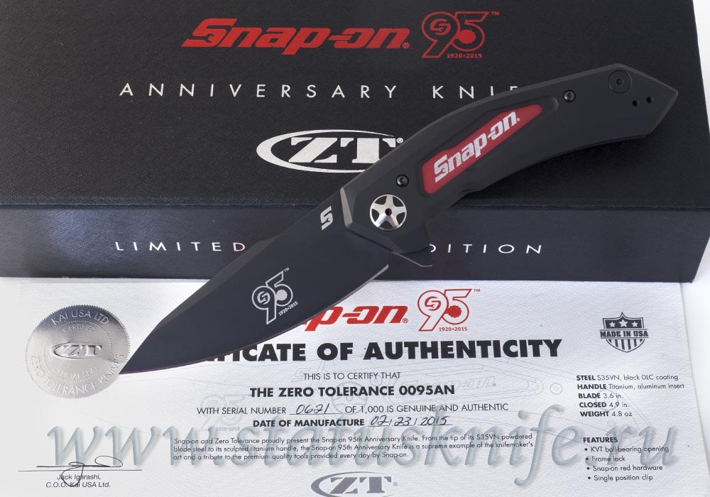 Лимитированная партия из 1000 штук 0095AN (Snap-On 95 Anniversary). Нож сделан на базе популярной модели Zero Tolerance 0095.