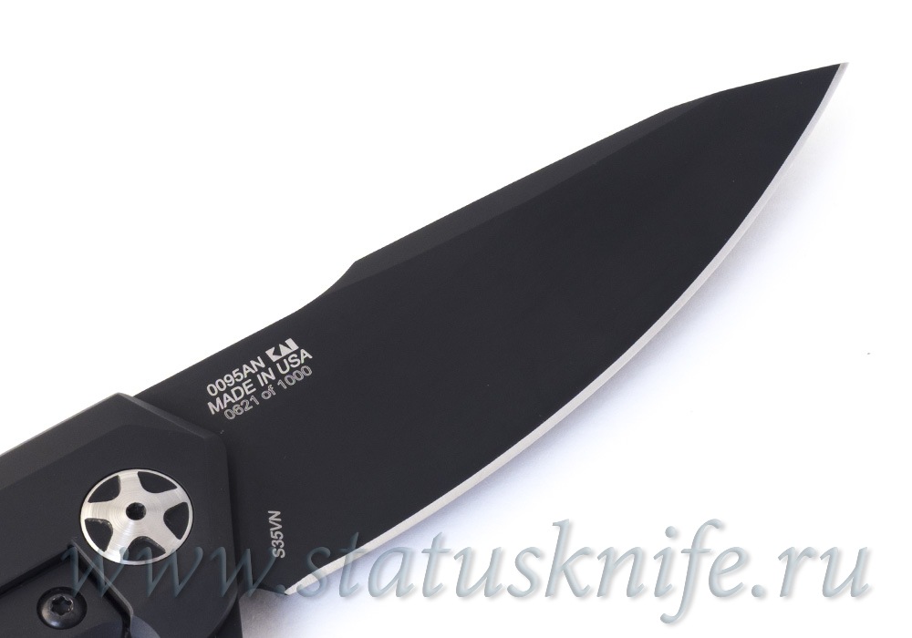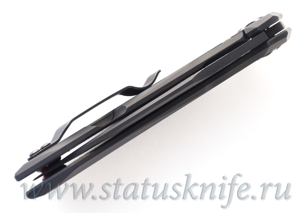 Лезвие длиной 90 мм выполнено в форме клип-поинта (Clip-Point) с закругленной режущей кромкой, острым кончиком и небольшим стильным фальш-лезвием на обухе клинка. Сам клинок сделан из премиальной стали CPM-S35VN в покрытии DLC (Diamond-like amorphous carbon), что в переводе означает «алмазоподобное углеродное покрытие», это технология плазменного импульсного распыления графита в вакуумной камере и осаждение ионов углерода с достаточно большой энергией на клинок ножа, тем самым обеспечивая плотный защитный слой. Клинки, изготовленные из этой стали, превосходно держат заточку.