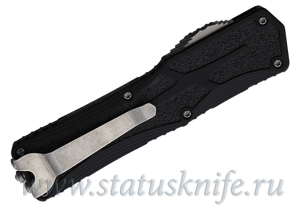 Heretic Knives Colossus 0422A OTF Recurve Knife, черная рукоять, светлый клинок в покрытии stonewash.