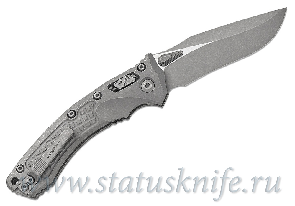 Модель Microtech 137RL-10FRMS1 Amphibian Ram-Lok Titanium имеет титановую рукоять и финишную обработку клинка Apocalyptic stonewash.