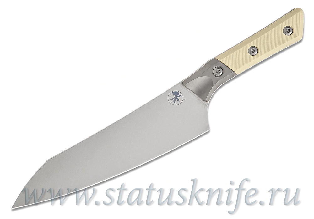 Нож шефа с длиной лезвия 203 мм и длиной рукояти 140 мм, сочетает в себе остроту и прочность, чтобы без усилий разрезать любые продукты. Прочная премиальная сталь M390MK обеспечивает исключительное удержание режущей кромки. Рукоять выполнена из G10 белого цвета с титановым больстером.