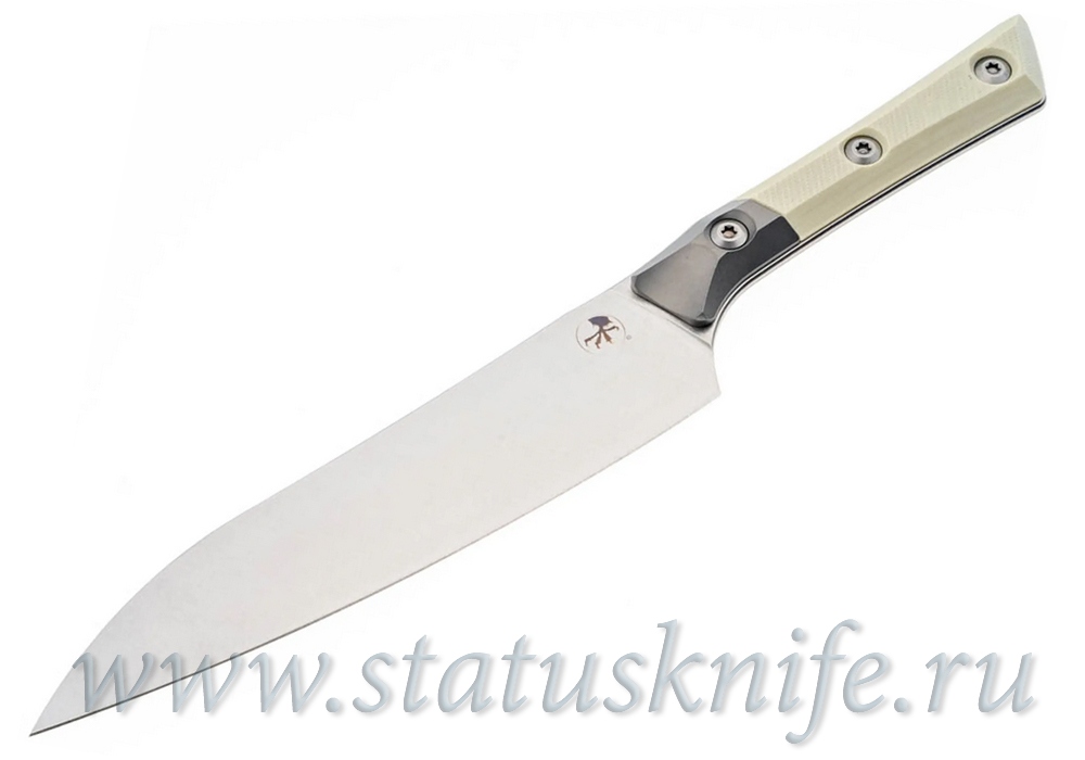 Длина общая 268 мм. Прочная премиальная сталь M390MK обеспечивает исключительное удержание режущей кромки. Рукоять выполнена из G10 белого цвета с больстером.