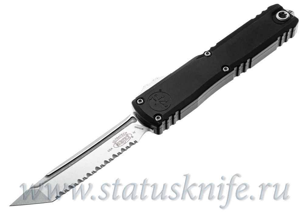 Модель Microtech 11234-12 Black Ultratech Gen IV Tanto имеет рукоять черного цвета и клинок M390MK с финишной обработкой stonewash, серрейторная заточка.