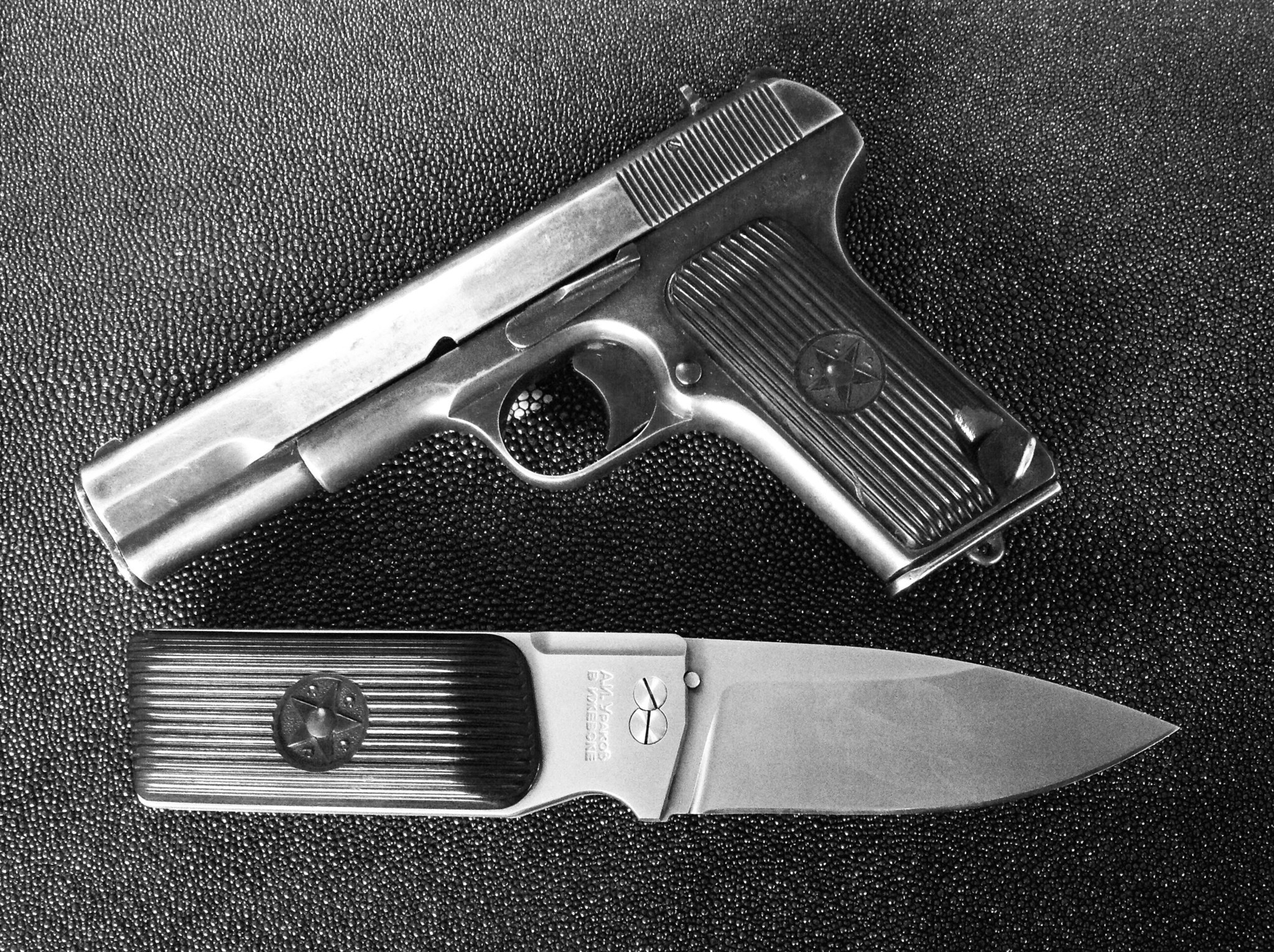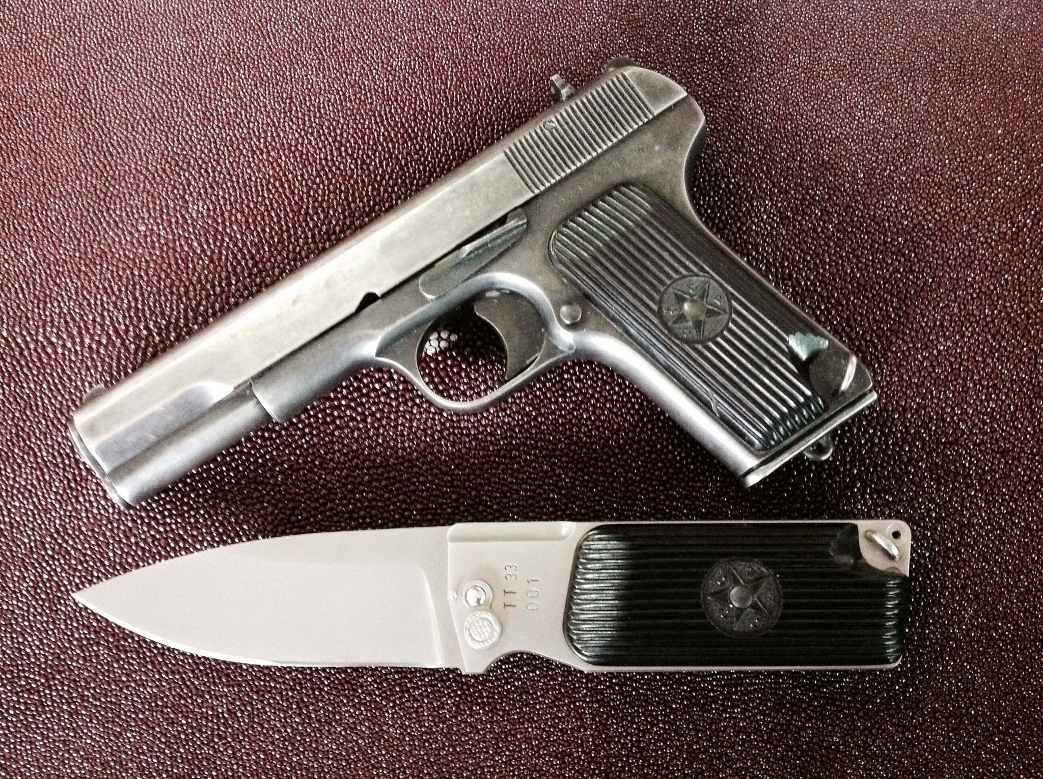 Нож ТТ-33 мастера А.И.Уракова с клинком из премиальной стали M390 с закалкой 62-63. Новый нож, на создание которого мастера вдохновил легендарный пистолет ТТ 33, конструкции Фёдора Васильевича Токарева. Накладки от пистолета ТТ. Затвор достаточно крепкий, надежный. Допуски минимальны.